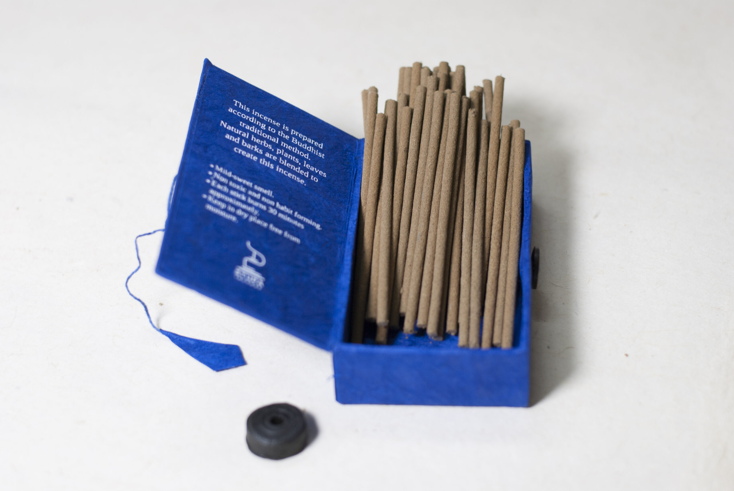 Each box contains 40 incense sticks (each burning for approximately 30 minutes) along with a mini black pottery incense holder, traditionally crafted using an open-fire technique.